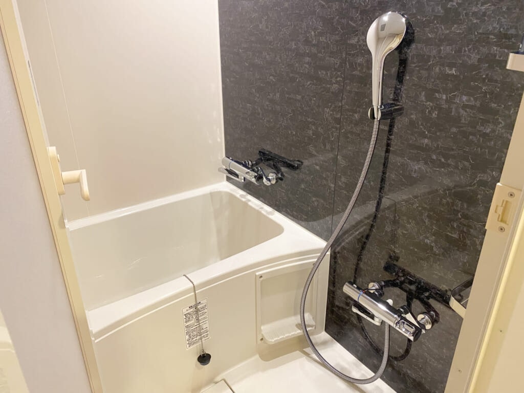 客室には湯船付きのお風呂がありますし、3階には広々とした大浴場も。15:00から25:00、4:00から10:30利用できる大浴場に向かう際は、客室からタオルセットを持って行きます。