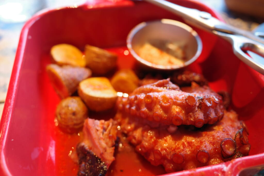 さらに、このお店でぜひ食べてほしいのが「真ダコのガリシア風」。 柔らかく煮込まれたタコは、お箸でほどけるほどトロトロ。オイルが染み込んだホクホクのジャガイモと一緒にいただけば、ワインが進むこと間違いなしです🍷