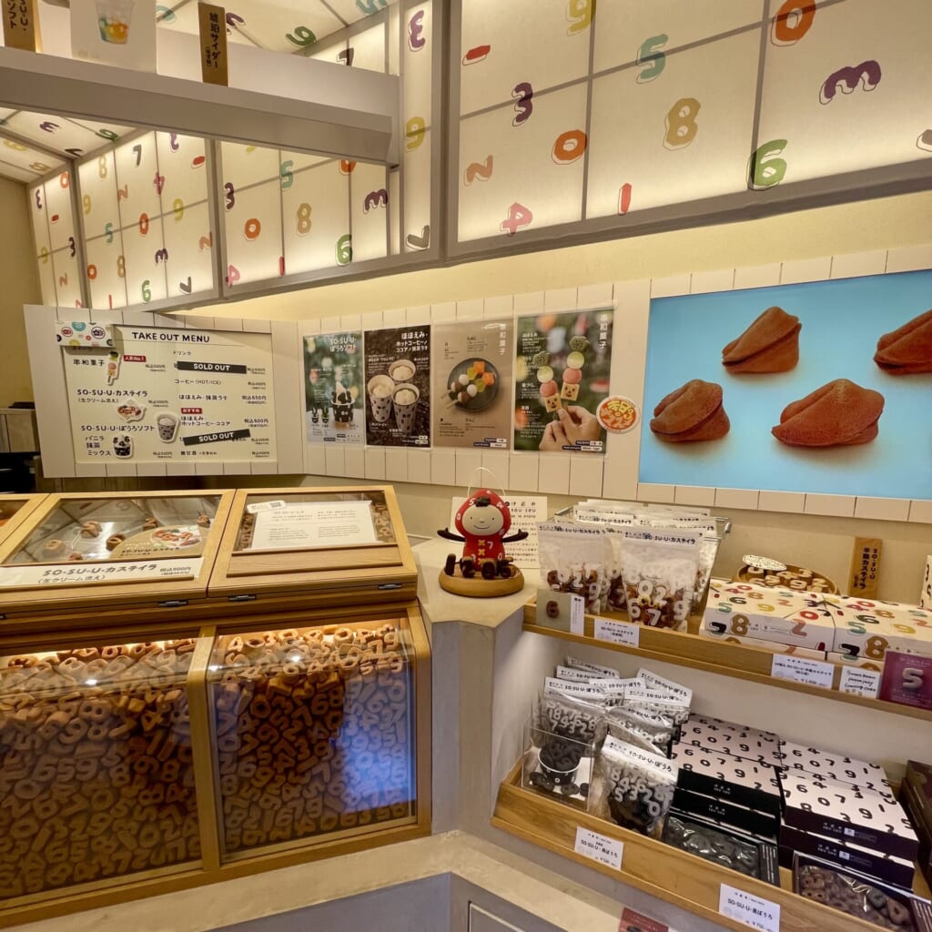 数字や形をしたカステラやボウロは、デザイン性も抜群でお土産で喜ばれること間違いなし。