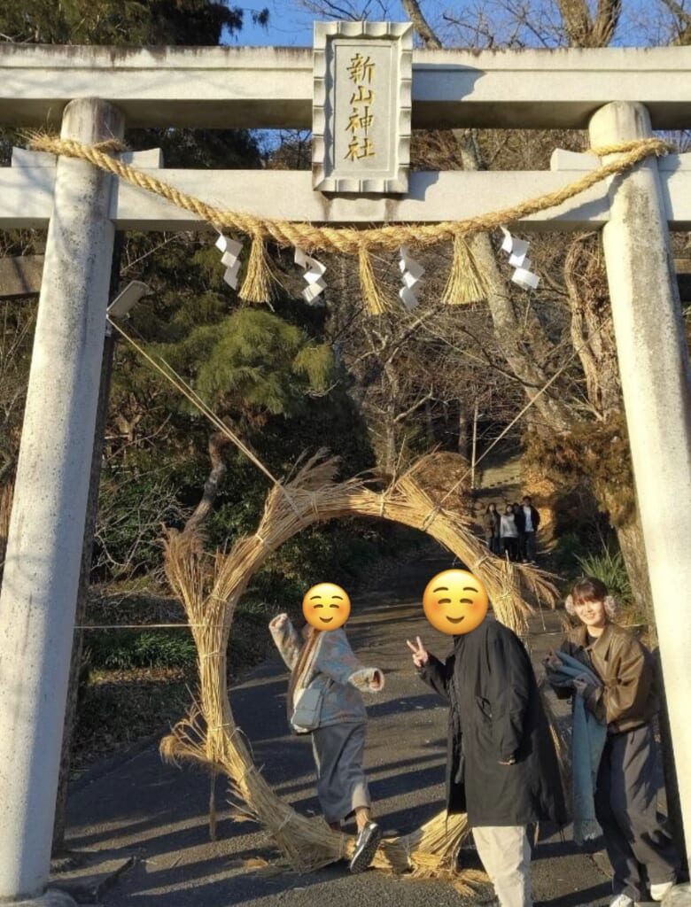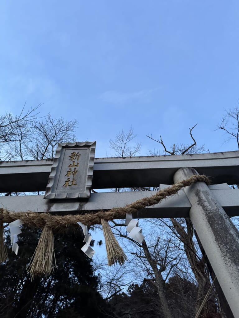 また、新山神社の鳥居には芽の輪がある。