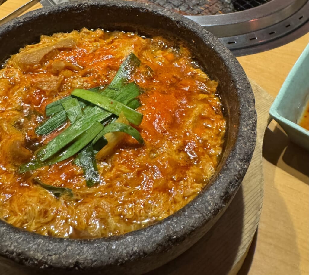 ピリ辛でホルモンや卵も入っていて、スープはサラサラではないので麺と絡み合って最高。