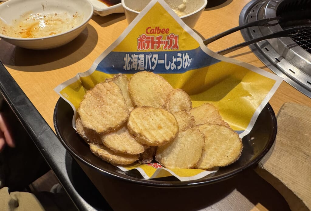 期間限定の北海道フェアメニューの中からは、ジンギスカンとカルビーの厚切りポテト(北海道バターしょうゆ味)を選択。