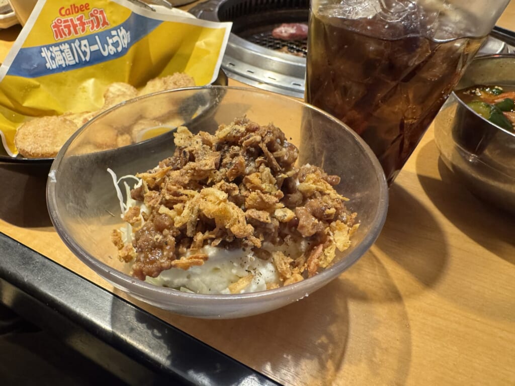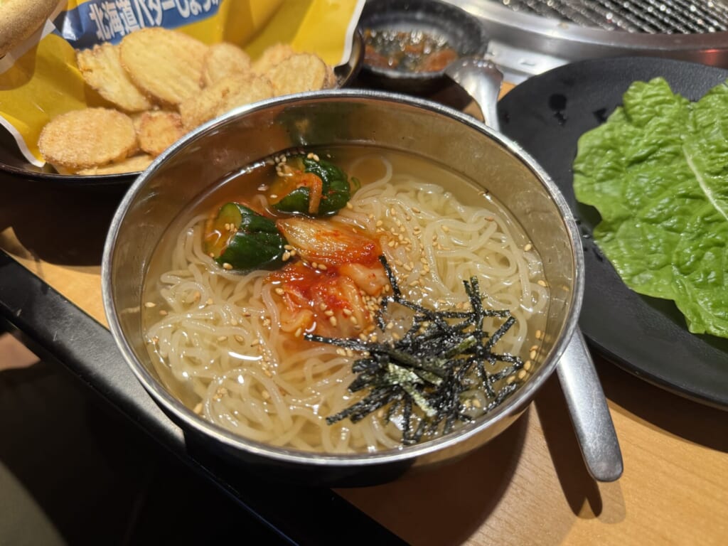 他にも、いつも食べる一口冷麺や、大人気らしいニラレバ、肉ポテサラも頼みました☺️