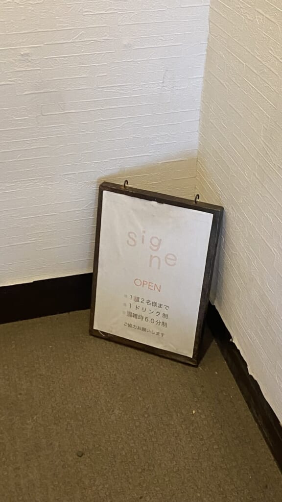 看板がないので、ここで合っているかな?と思う方もいらっしゃるかもしれませんが、階段を上がった先に小さな看板にsigneと記載があるのでそちらが目印になっています👌🏻