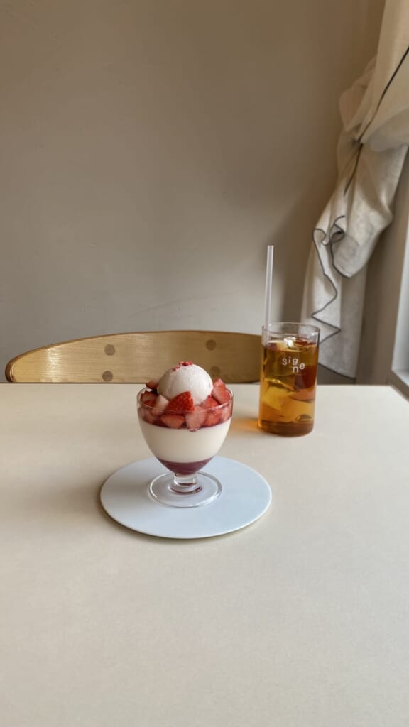店内がとても暖かかったため、ドリンクはアイスティーのストロベリーを🫧