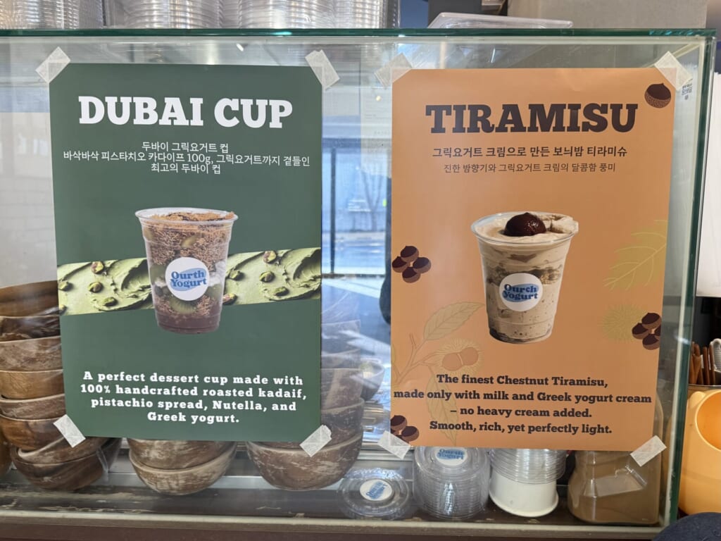 メニューには、まだまだ流行中のドバイチョコをあしらったヨーグルトカップも。色々な種類があって何度も通いたくなりますね!
