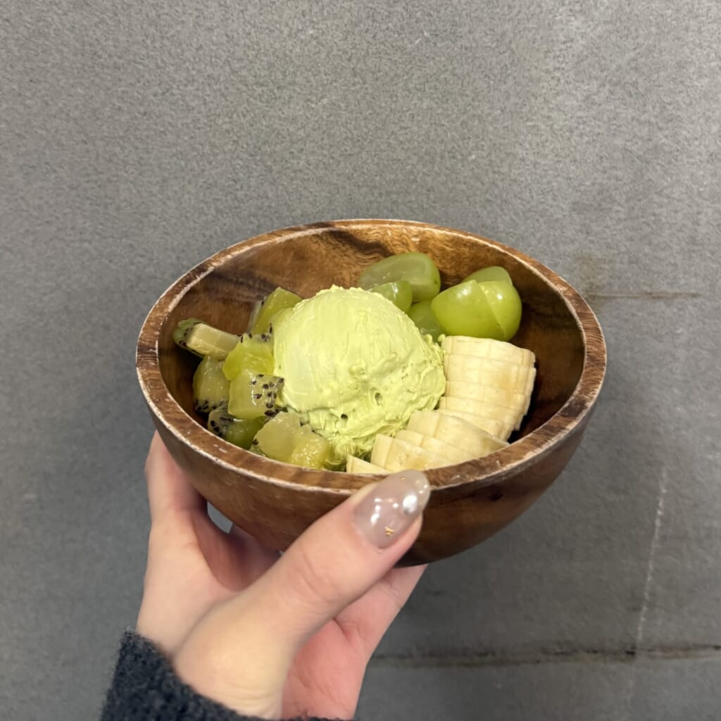 朝ごはんを食べた直後だったので、バナナと好きなフルーツを2種類選べるさっぱり目のメニューをチョイス!