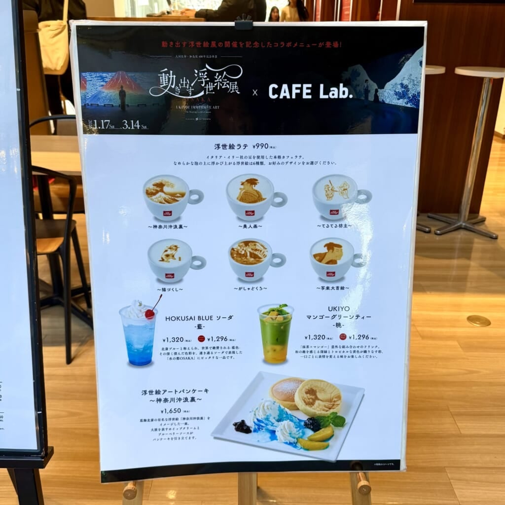 北館1階「CAFE Lab.」で「動き出す浮世絵展 OSAKA」とコラボレーションしたメニューが販売されています。
