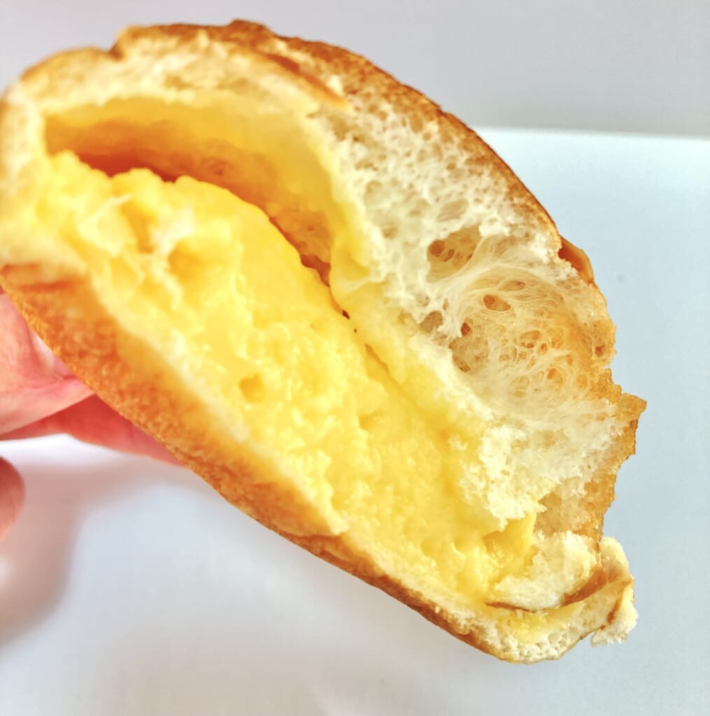 割ってみると溢れそうなくらいたっぷりのカスタードクリームが!このビジュたまらんですなー✨