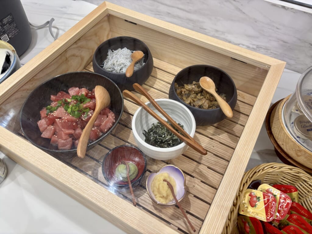 一階の「和 なごみCafé&Dining」でバラエティ豊かな食材についつい欲張ってしまいます🤤