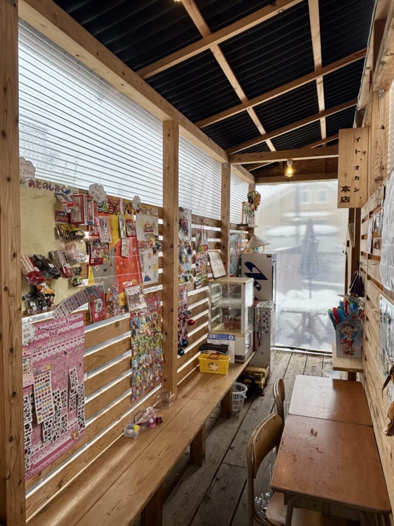 実は店内も凄くレトロで可愛いんです。イートインスペースは勉強机になっていて、奥の小さなお部屋には駄菓子が沢山売ってました🏫