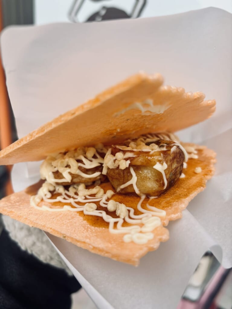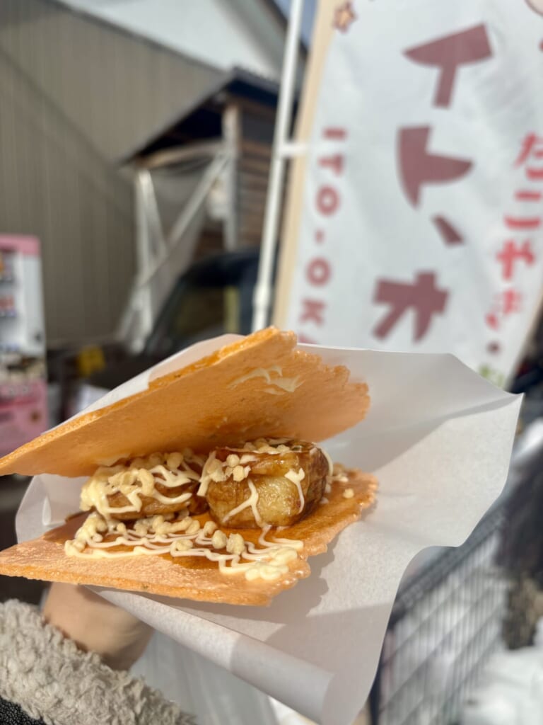 パリパリのおせんべいとアツアツふわふわなたこ焼きが絶品すぎました🤤おやつにもぴったり〜!