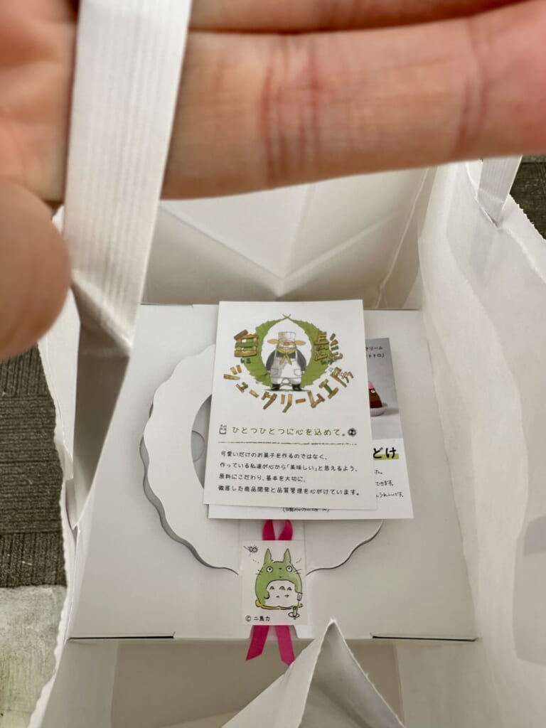 今回は、1〜3月にしか味わえない、キャラメルバナナクリームのトトロをお願いしました。ピンクに黄色のリボンが目印です。