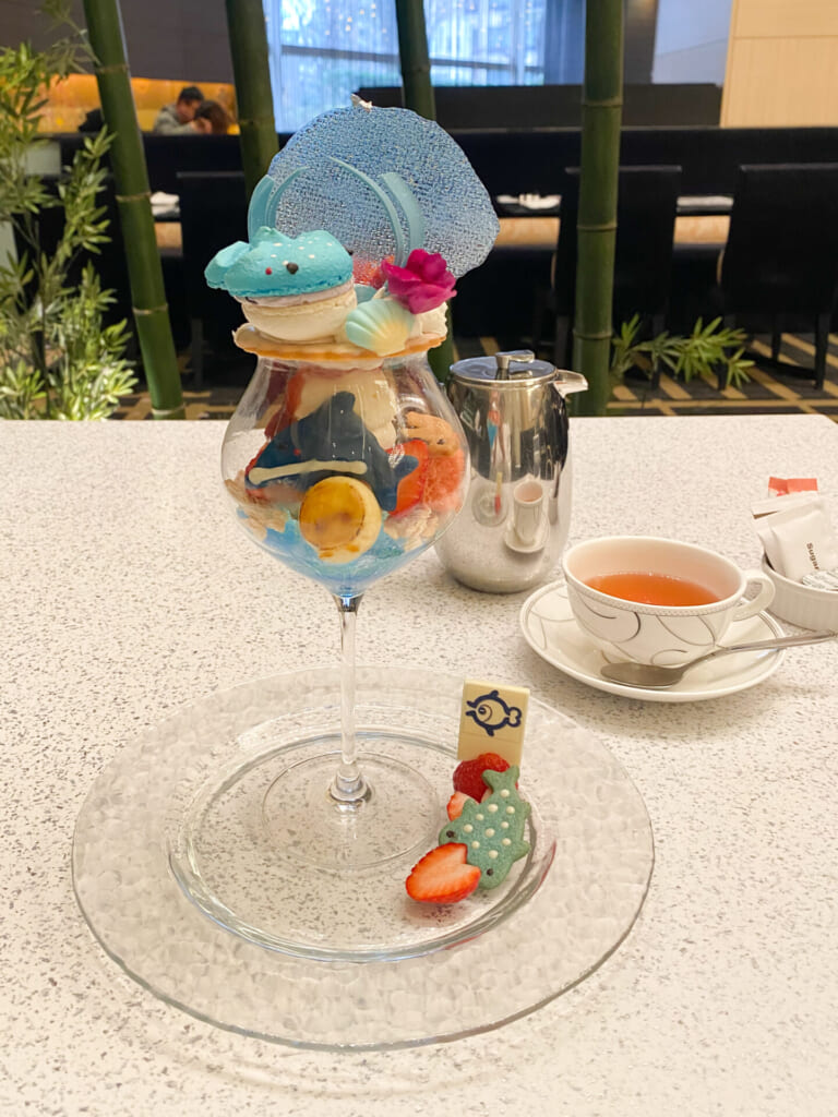 クッキーで表現されたジンベエザメやイルカ、ペンギンがキュートなパフェは、運ばれてきた瞬間がら気持ちが引き込まれます!