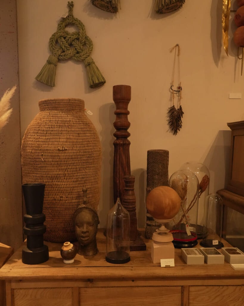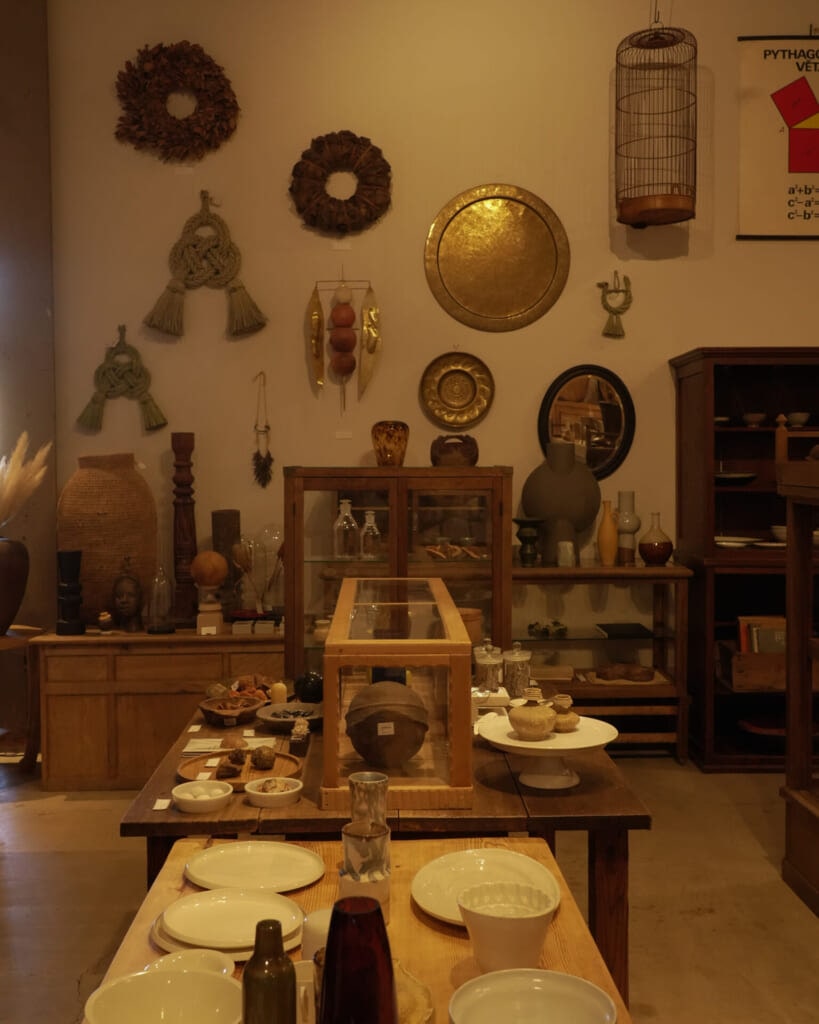 新しいものと古いもの、作家ものと古道具が無理なく混ざり合っているからこそ、自分の部屋にもこんなふうに少しずつ好きなものを集めていけたら、と想像がふくらみます。テイストをひとつに絞りすぎない景色にも、この場所らしさがありました。