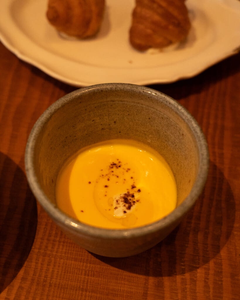 続く人参のポタージュは、素材の甘みを素直に感じられる、やわらかな味わい。