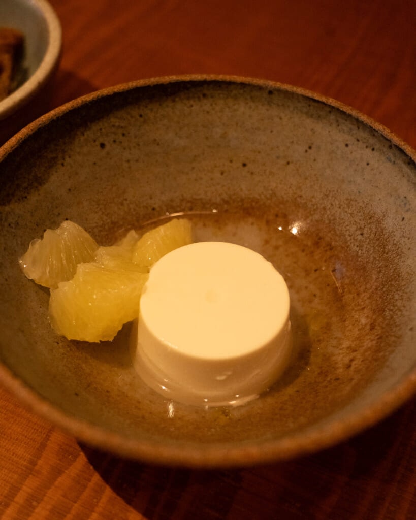 デザートは、蕎麦のブランマンジェと文旦。