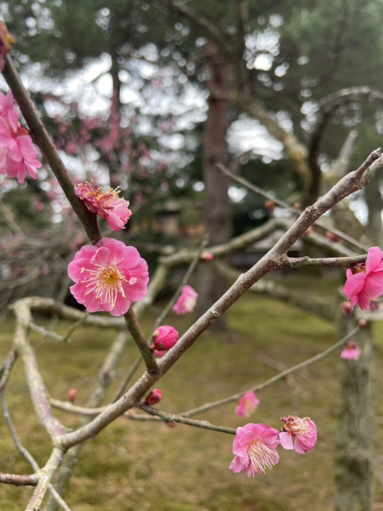 私が訪れた2月は雪もなく、梅の花が咲いていました。