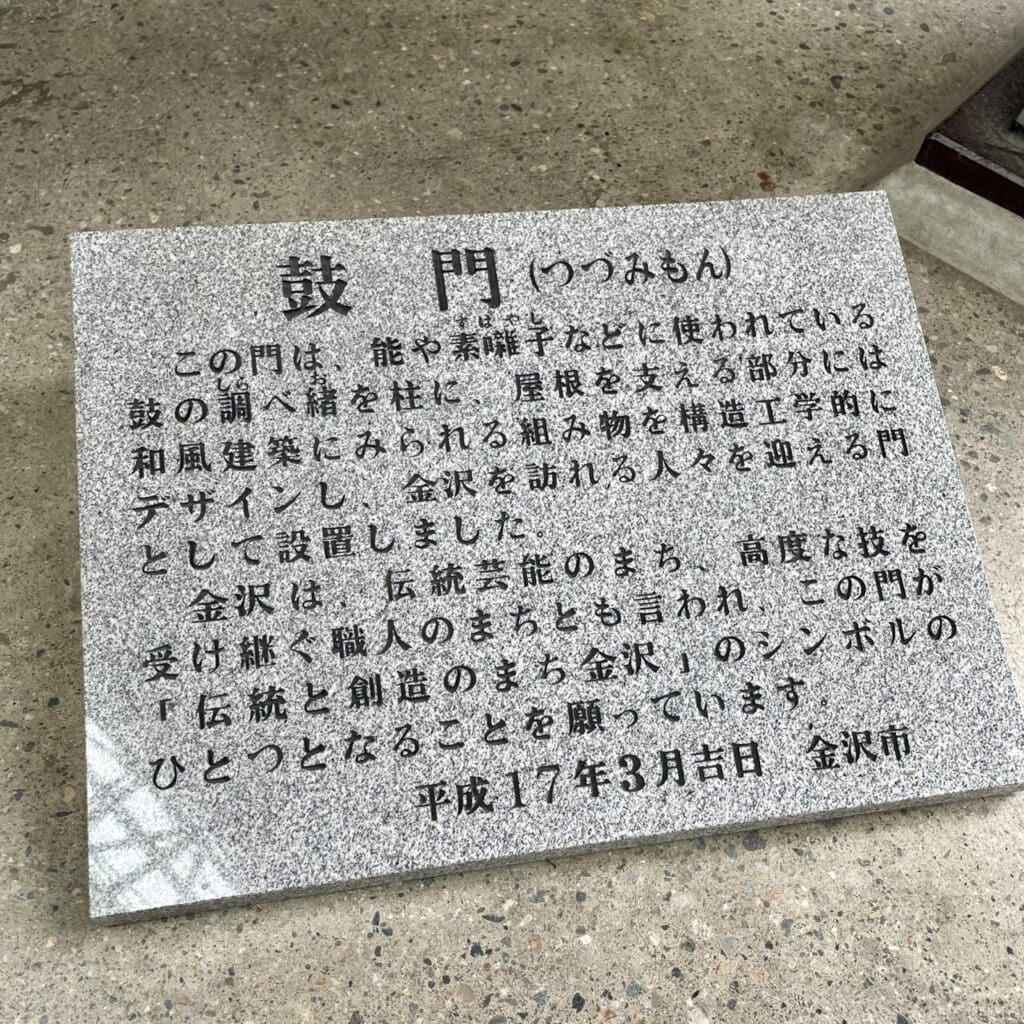 駅前にそびえるのは、伝統美あふれる『鼓門(つづみもん)』です。