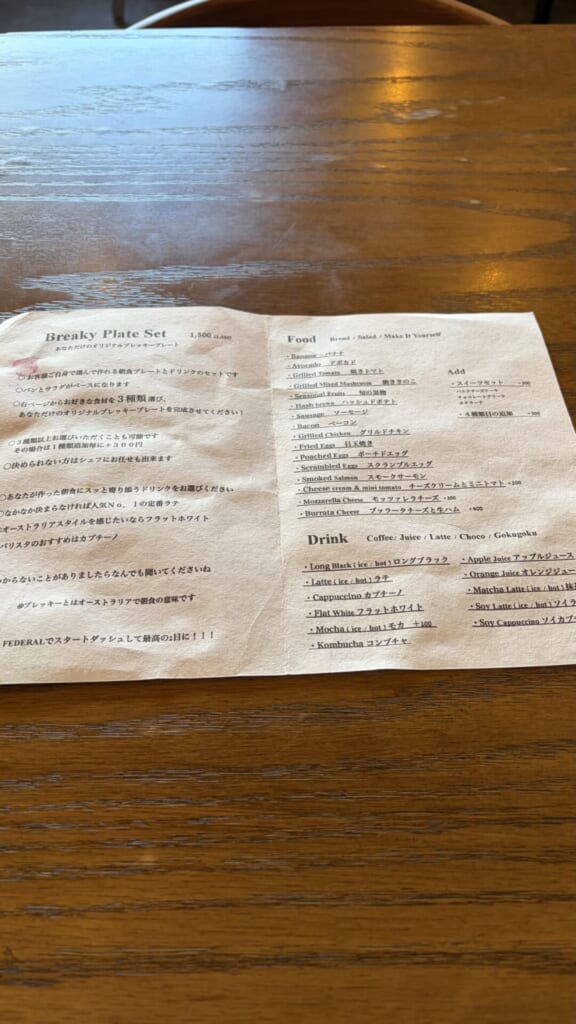 『federal(フェデラル)』というオーストラリアスタイルのお店。