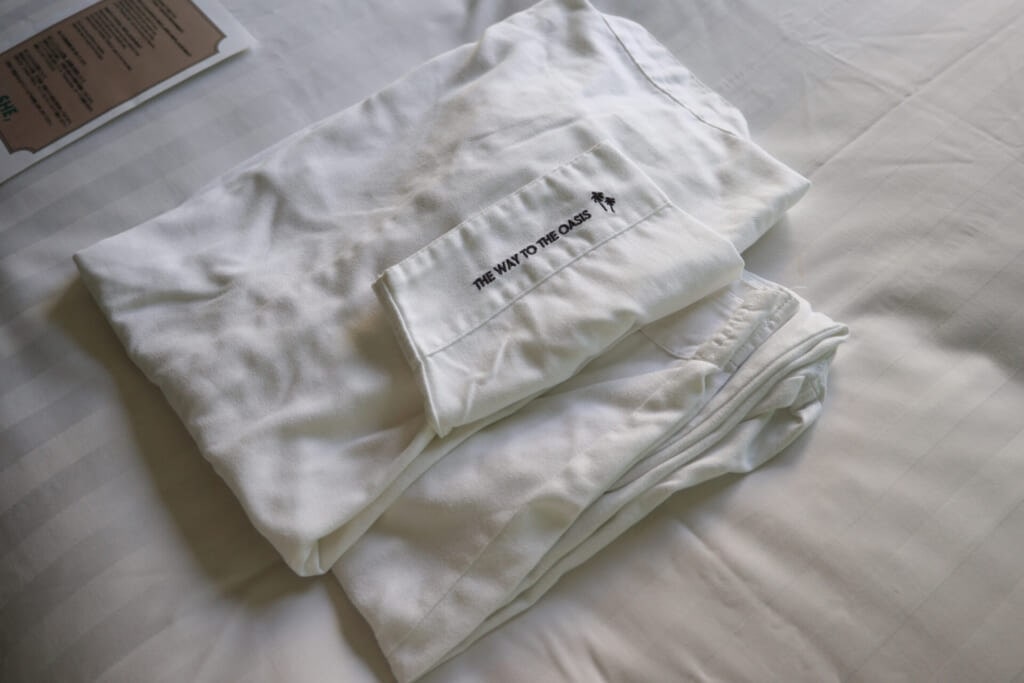 ルームウェアには、「THE WAY TO THE OASIS(オアシスへの道)」の文字があしらわれています。