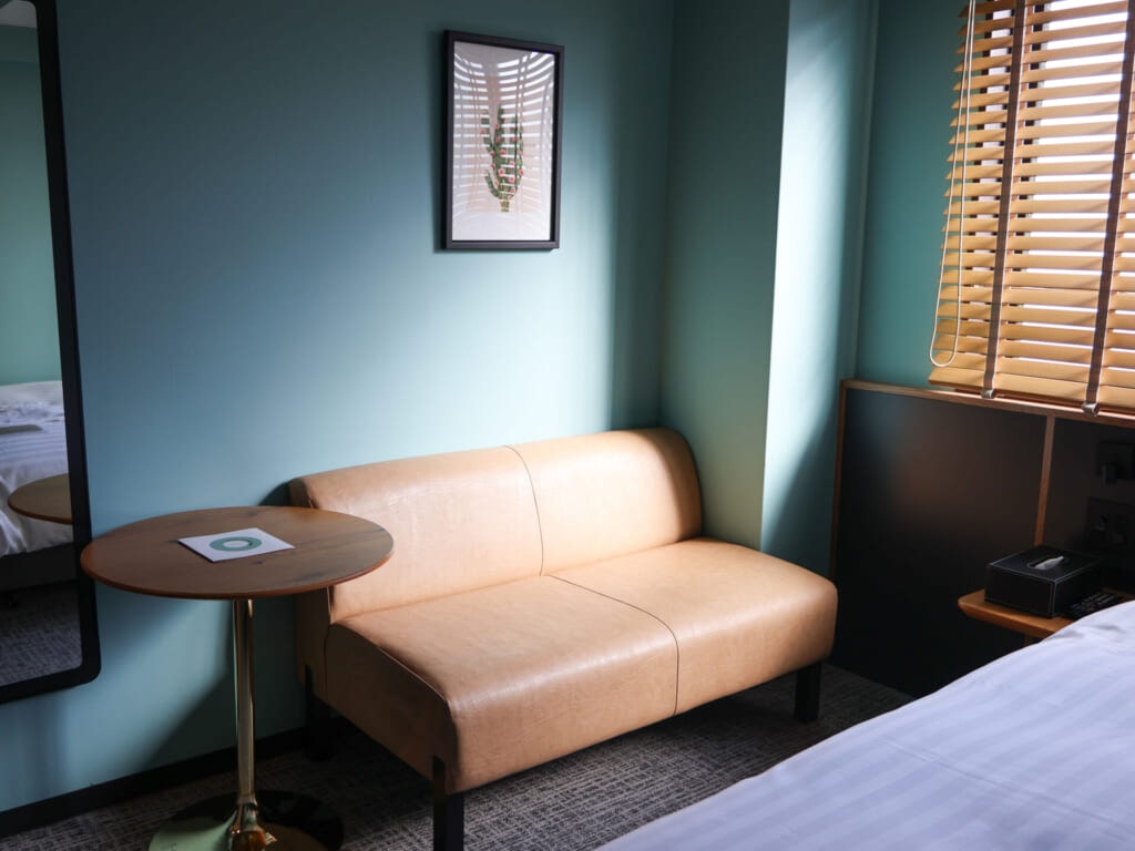 ソファはしっかり固めなので、荷物をおいたり、身をまかせたり。ベッドの横にあるのもすごく便利で、ベッドの上から手を伸ばして荷物をゴソゴソ漁ったりできました。