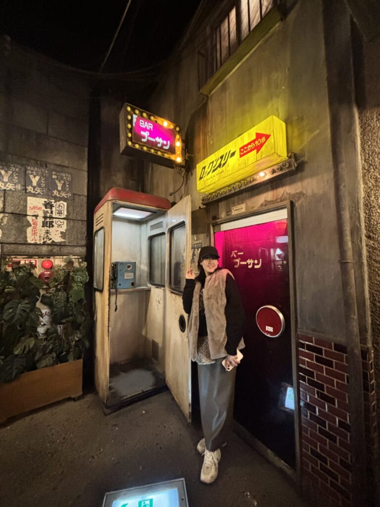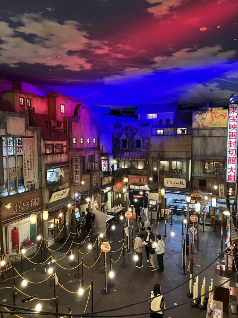 地下へ降りる階段を進むと、そこには昭和33年の夕暮れ時を再現した幻想的な世界が広がっています。