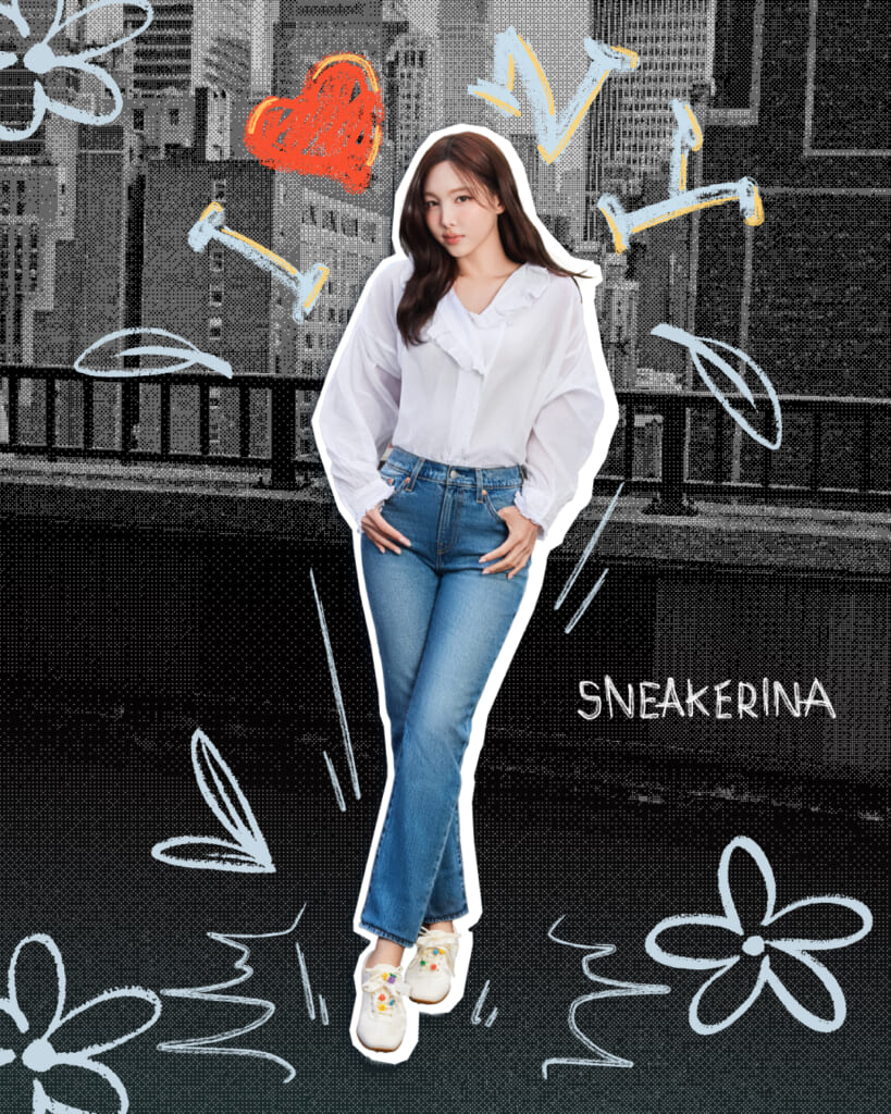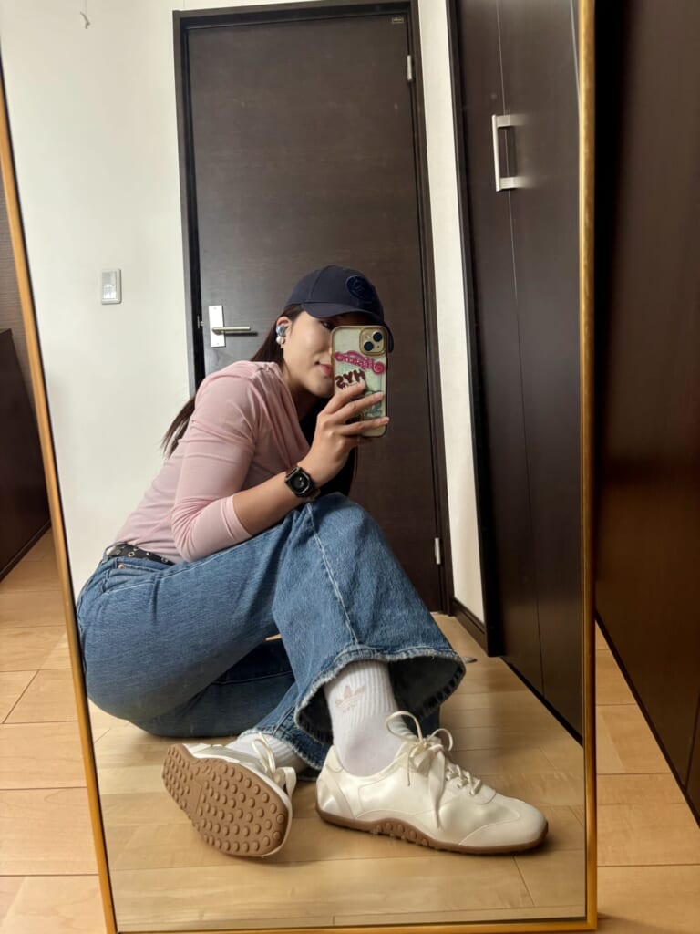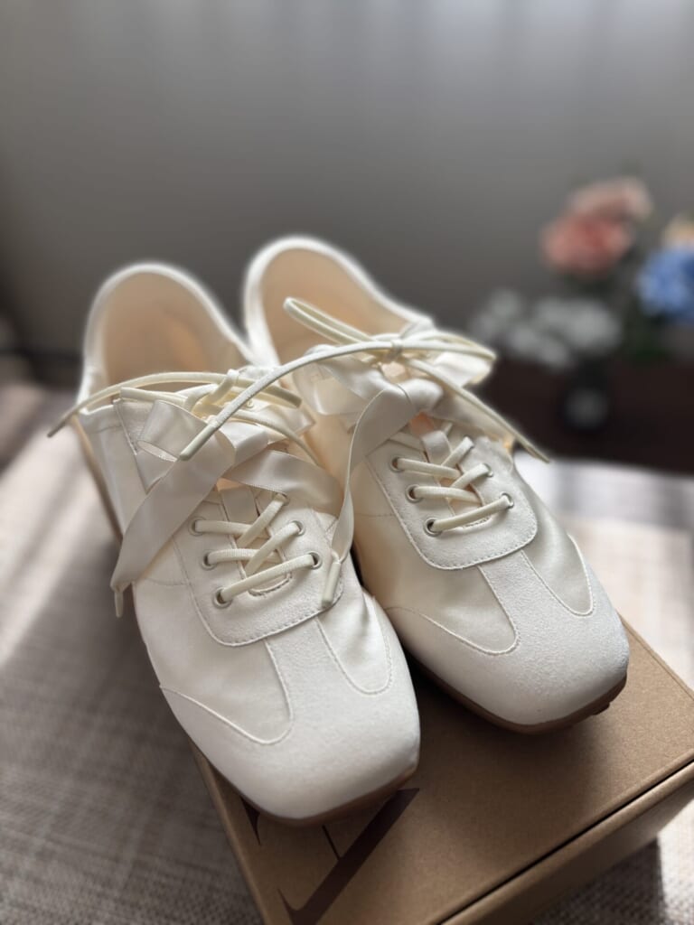 特に気になっているのが、ナヨンさん着用のサテン素材のスニーカーパンプス。上品な光沢があって(自分も愛してやまない)デニムスタイル👖などにも絶対に合いますよね🥹🩵