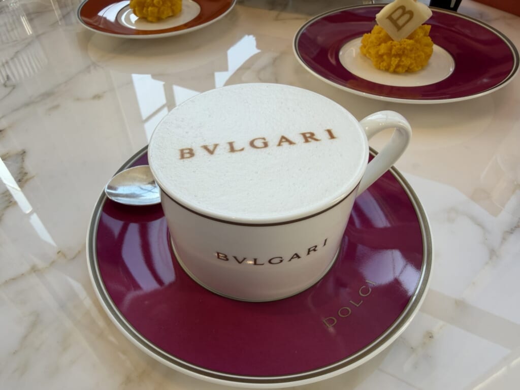 カプチーノにはブルガリのロゴがデザインされていてオススメ。