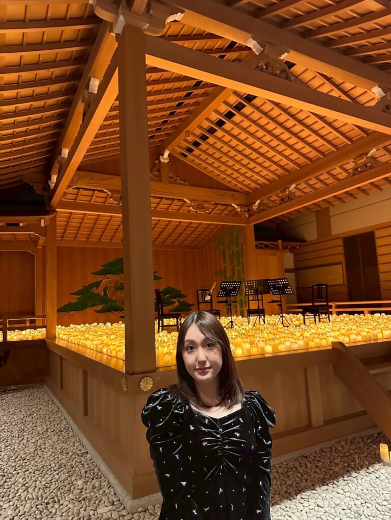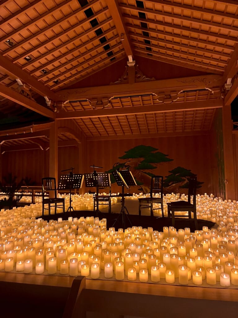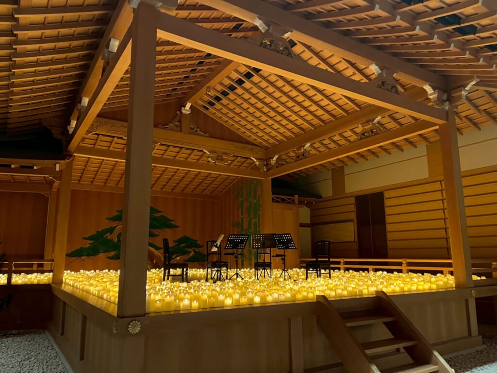 日本の伝統芸能の聖地である能舞台が、この夜だけは何千ものキャンドルに照らされ、時代と文化が交差するロマンチックな空間へと変貌を遂げていました🕯️