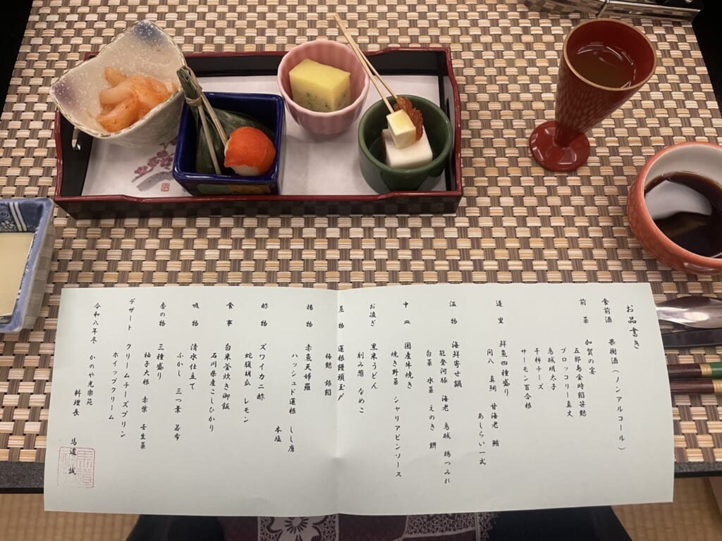 夜ご飯は、ご当地食材を使った懐石料理でした。