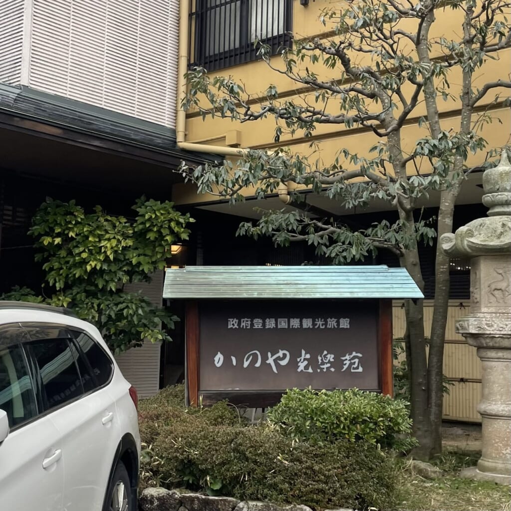 私が泊まったのは、金沢駅から車で約1時間、片山温泉内にある『かのや光楽苑』です。