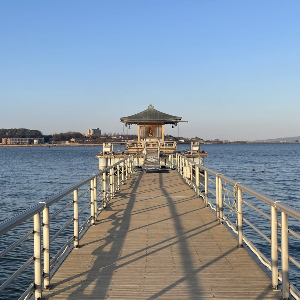 宿から歩いて行ける絶景スポット『浮御堂 』は海に浮かんでいるような神秘的なお堂。