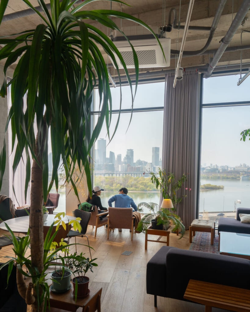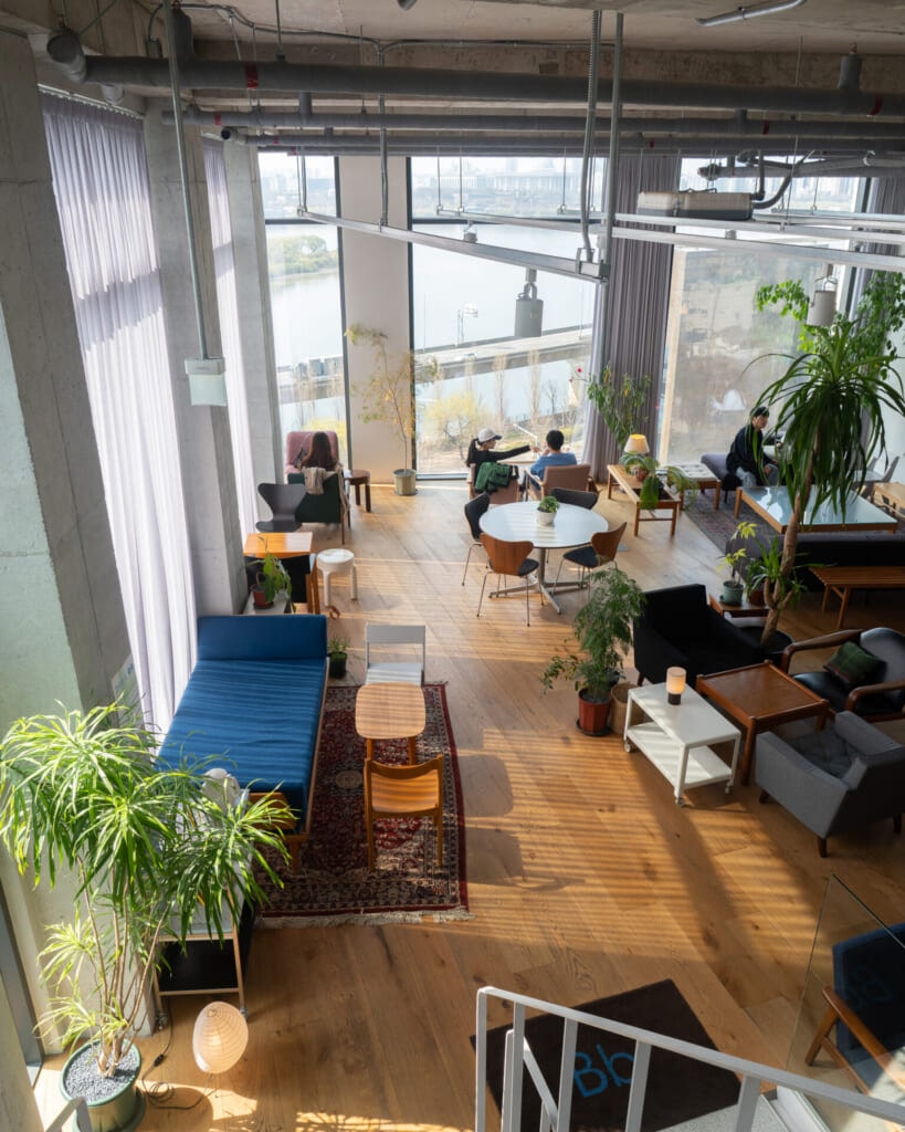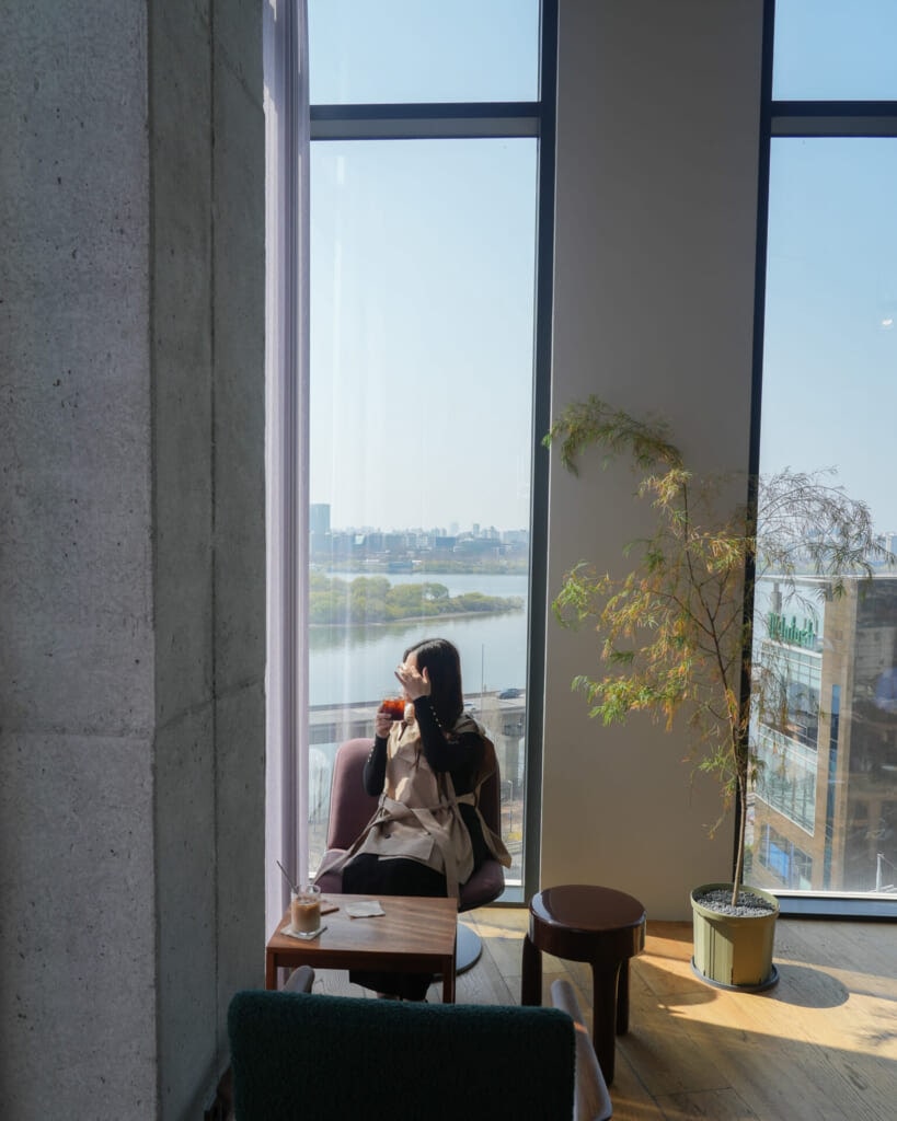 上水エリアにある「BEAN BROTHERS COFFEE HOUSE」は、まさにそんな気分にぴったりのカフェ。扉の先に広がるのは、無機質すぎない洗練された空間と、大きな窓いっぱいに映る漢江の景色。