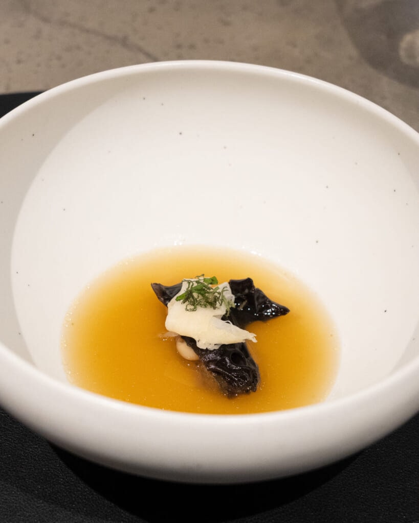 マッシュルーム、松茸、キクラゲ、韓牛を合わせたスープも、香りの印象が強く残る一皿でした。