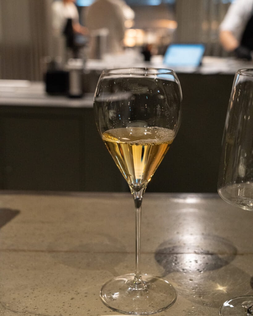 前菜に合わせたワインを選んでいただき、スタッフの方が一皿ごとに丁寧に説明してくれました。料理だけでなく、ワインが注がれるタイミングまできれいに揃っていて、コース全体の流れがとても心地よく感じられます。