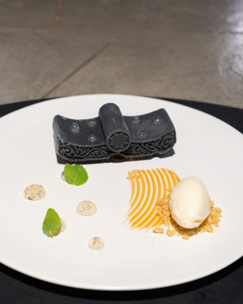 コースの終盤に登場したのは、瓦をモチーフにしたデザート。