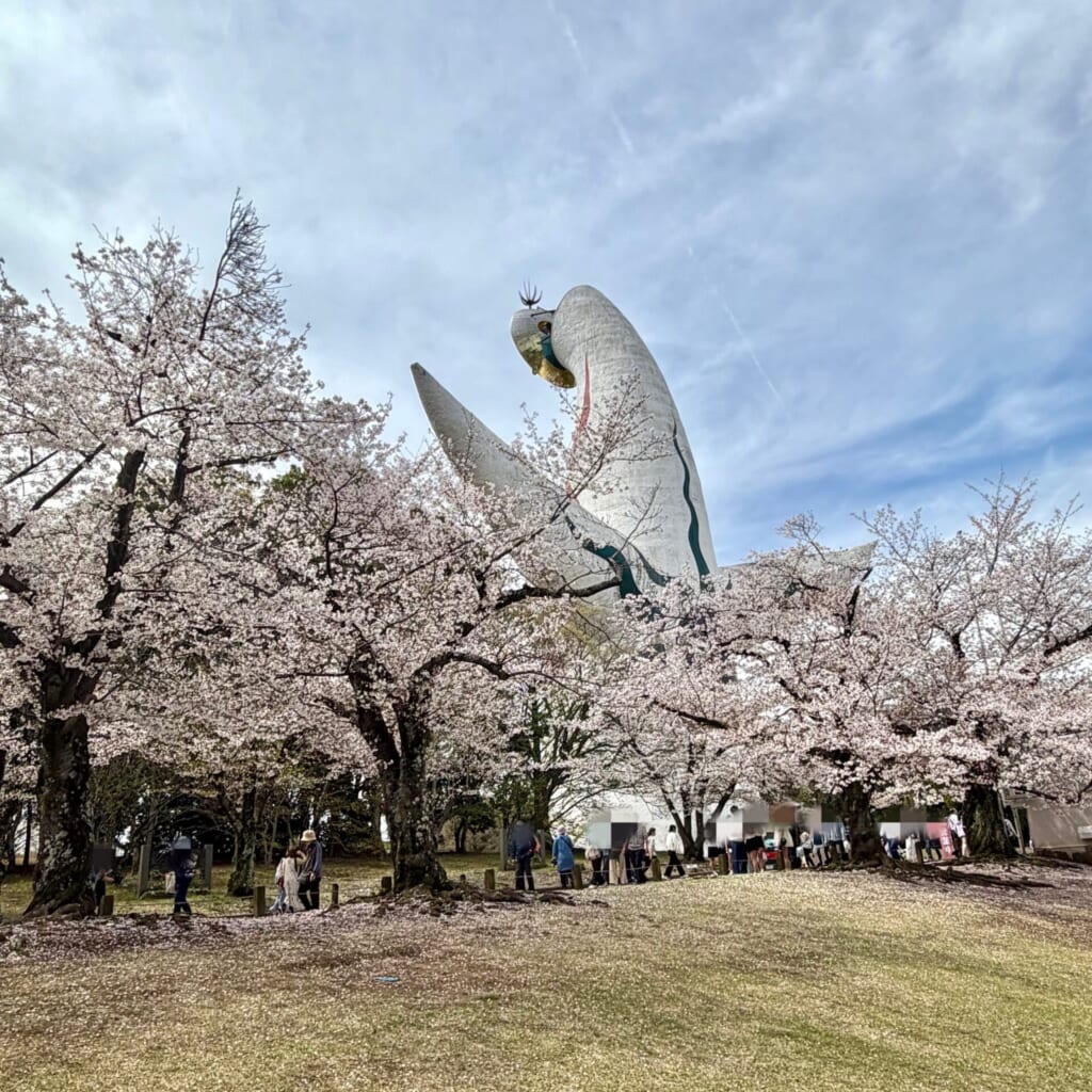 広大な園内には12品種約5,500本もの桜が咲き誇り、太陽の塔を背景に広がる景色はまさに圧巻。昼間は青空と桜のコントラストを楽しみながらのんびりお花見、そして夜にはライトアップされた幻想的な夜桜も堪能できます。