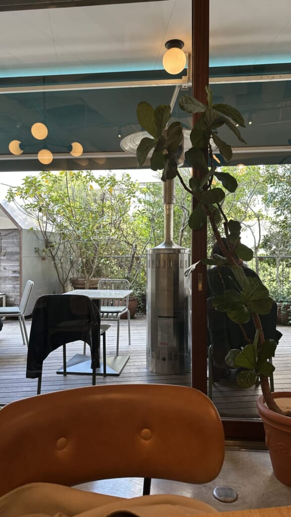 店内はオープンで大きな窓から外の緑が見え、開放感があります。テラス席もあり、天気が良い日は外で食事している人も多かったです。木や植物が多く、全体的に落ち着いた雰囲気で、ランチだけでなくカフェ利用にも向いている。