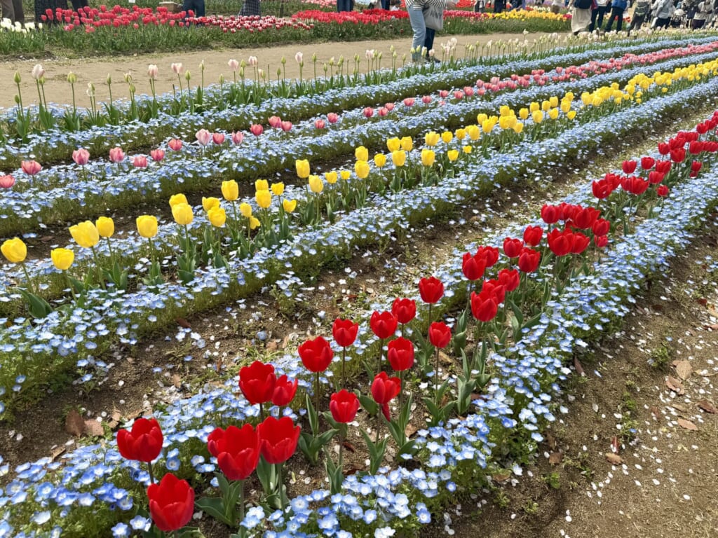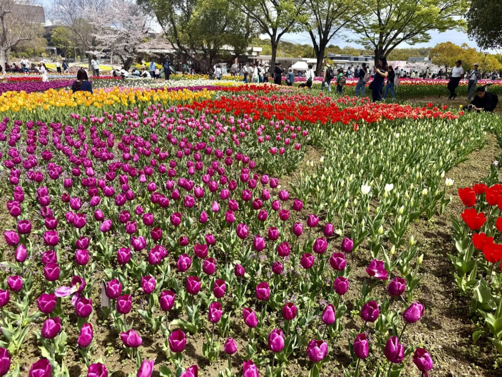 ですが、桜だけではありません!この時期はチューリップフェスタも開催され、園内はさらに華やかな景色に包まれています。