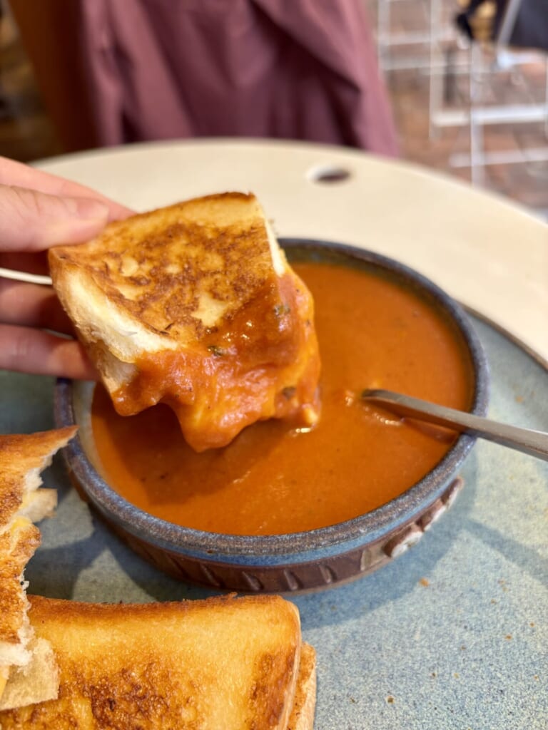 スープはめちゃくちゃ濃厚でtheトマト!!チーズがとろけるトーストに付けると更に美味しい👏健康的で毎朝食べたい一品