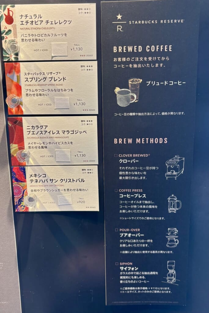 スターバックスリザーブ®スプリングブレンドの、淹れ方はスタッフさんおすすめCLOVER BREWED®(クローバーブレンド)にしました