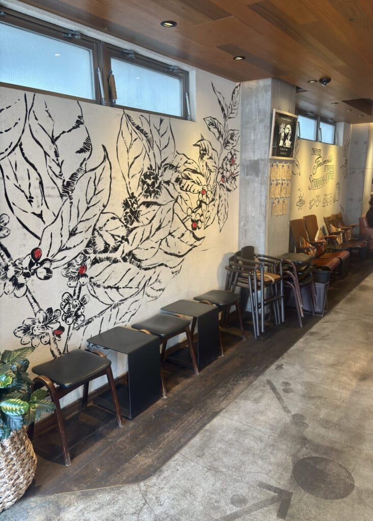 通常のスタバとは違い「和モダン」なデザインの店内☕︎