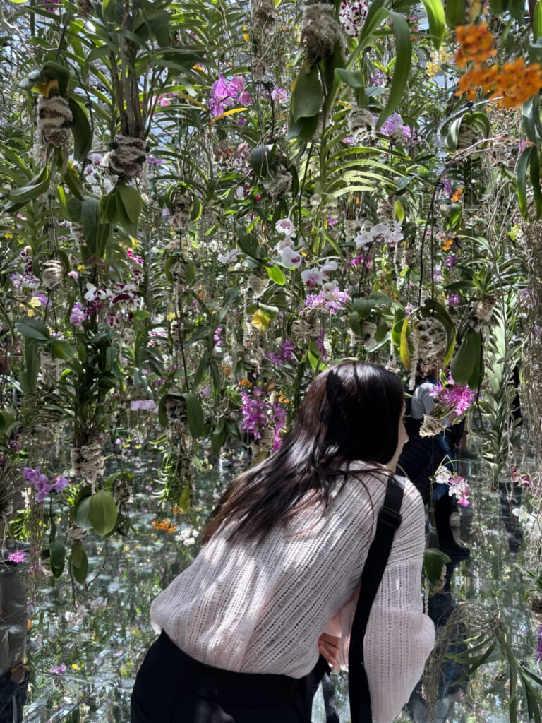 今はまさに桜が主役!!床が鏡になっているので、寝転がって眺めていると、まるで宇宙の中で桜と一緒に浮かんでいるような不思議な感覚に。時間を忘れて見入ってしまいました…🥹