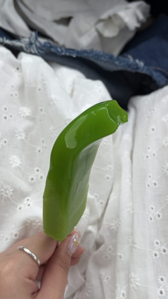 食べ始めの食感は「シャリ」、ですが、食べ進めるとゼリーのように変化していきます。