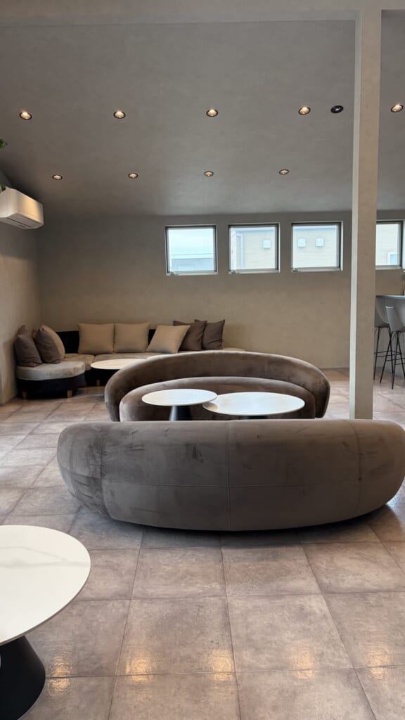 階段で2Fに上がると落ち着いた大人の空間が広がっており、大きなソファがなんとも贅沢🛋