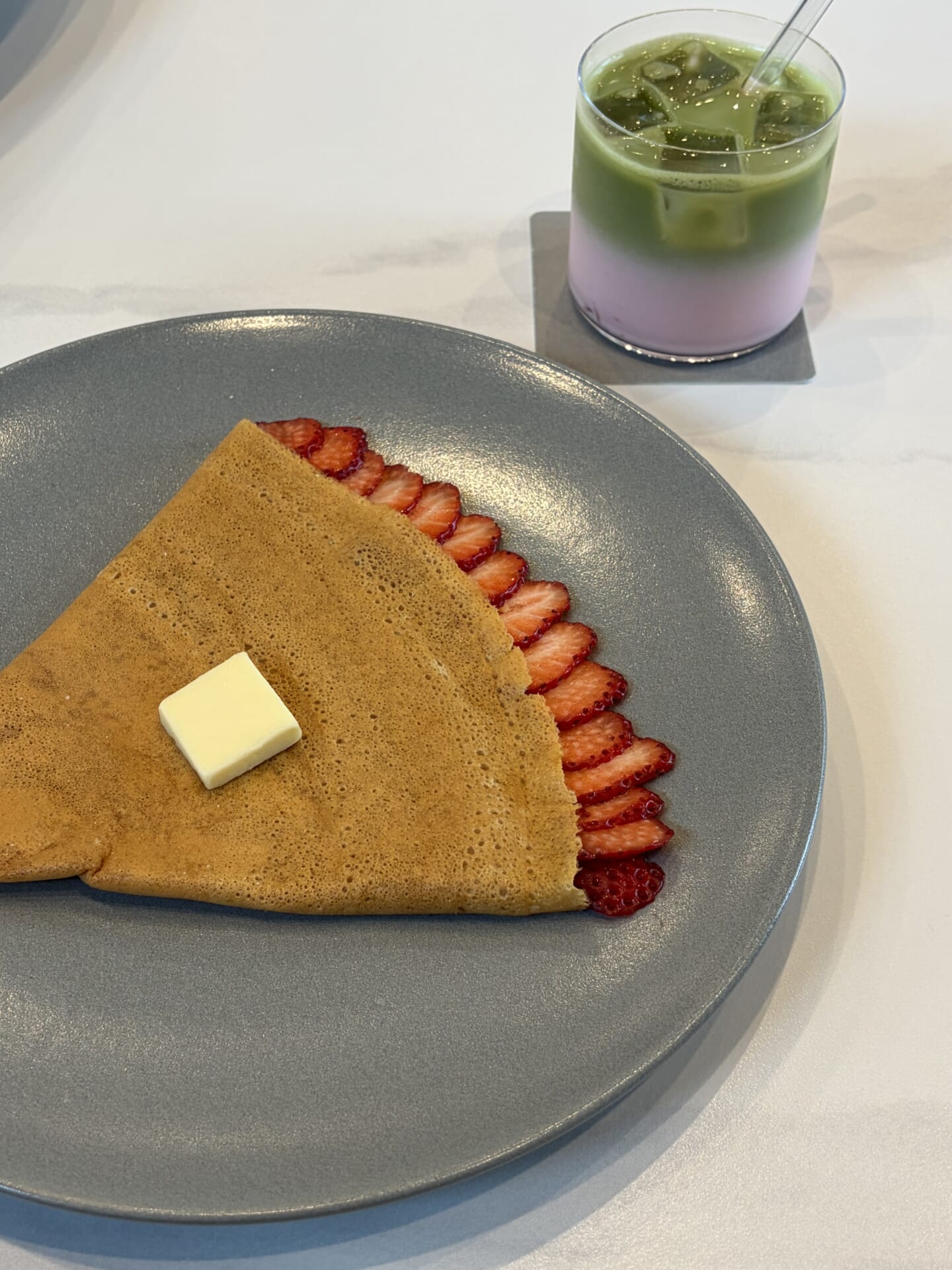 糖度の高い「あまりん」を使用しており、カリカリモチモチに焼かれたクレープ、ジャリジャリの砂糖、あと引くバターの味が最高に美味しいデザートです🧈