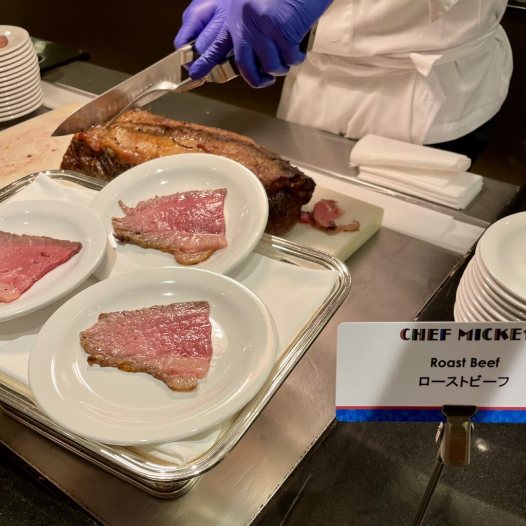 中でも一番テンションが上がったのは、目の前で切り分けてくれる『ローストビーフ』です。