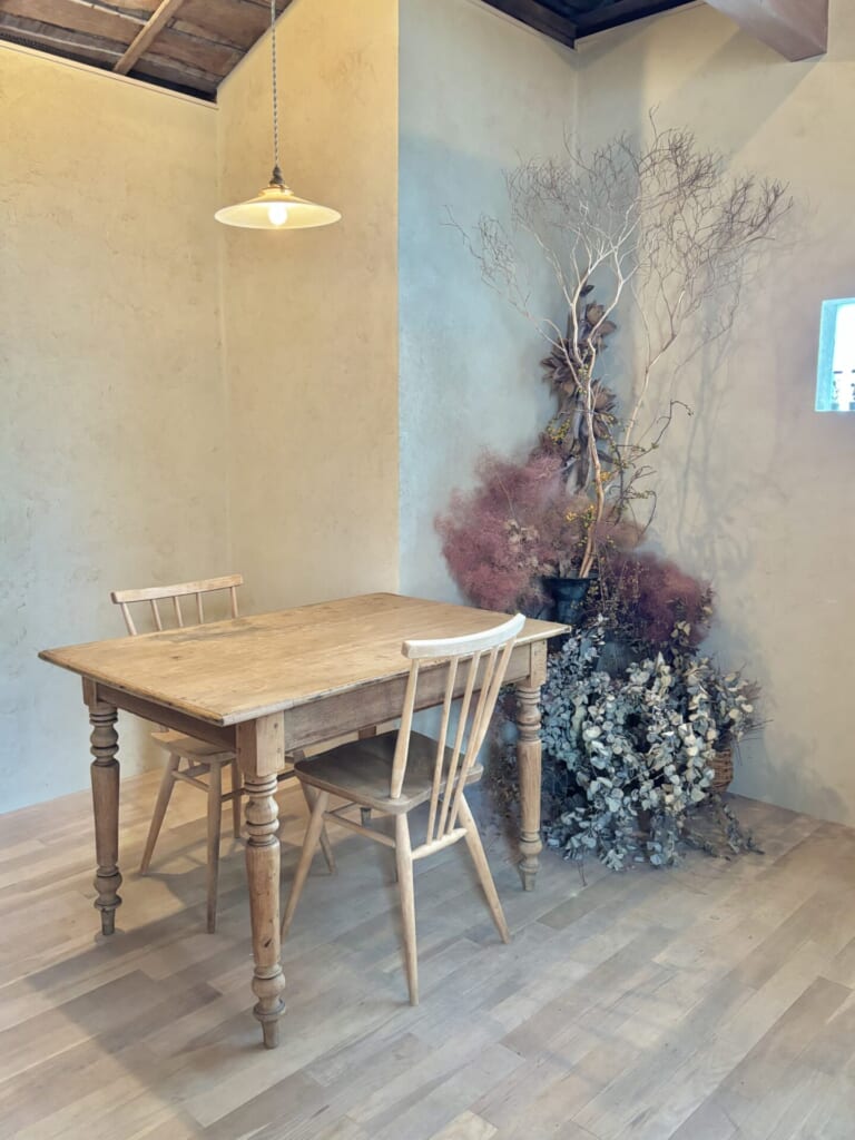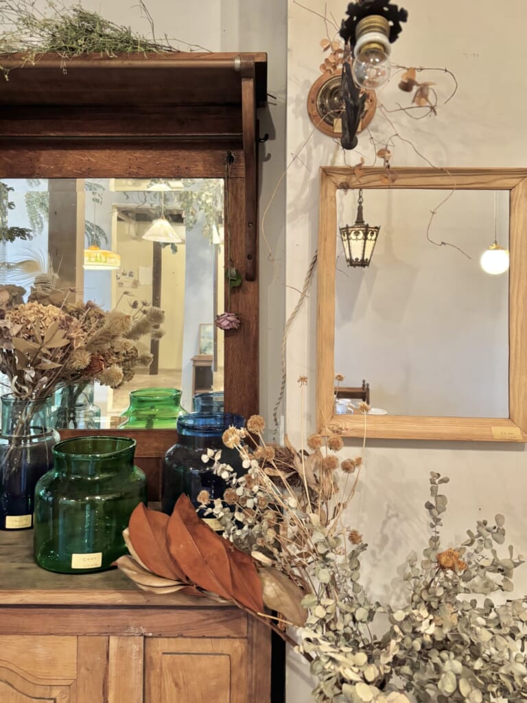 生花とドライフラワー、アンティーク家具がとっても可愛らしいんです。