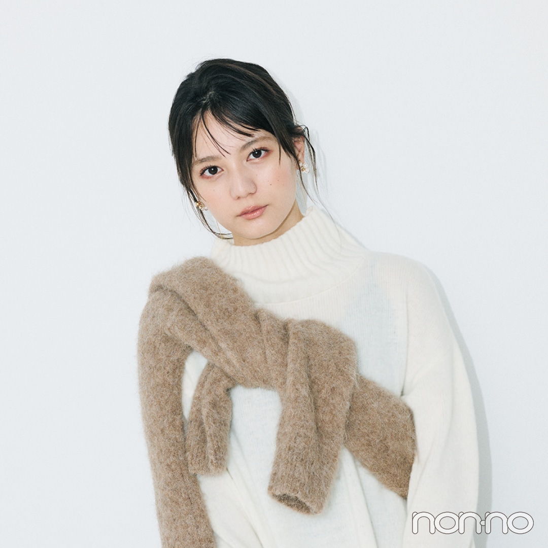 【日向坂46小坂菜緒】ニットをほっこりさせないテク。質感ミックスで地味見え防止